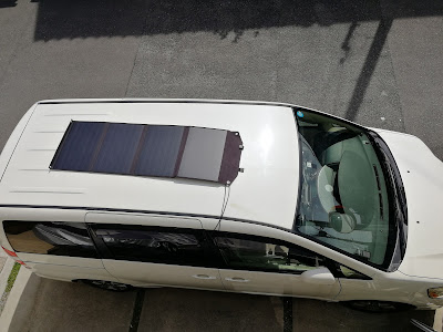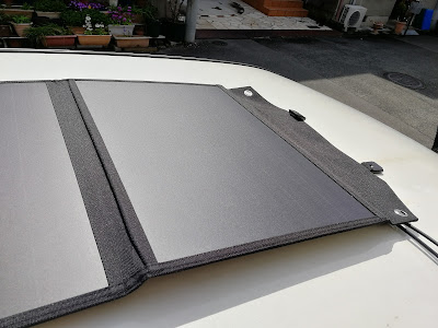 なので、キャンピングカー作成の動画見てると100Wのパネルを2枚装着してるのを見ました。それだとちょうど1日車動かなくてもフル充電できる感じですね♪